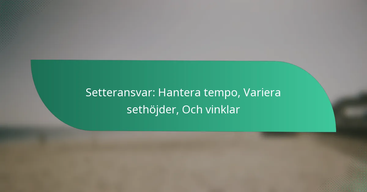 Setterns förmåga att hantera tempo är grundläggande för att kontrollera spelets takt. Genom att variera hastigheten på hur bollen sätts kan de störa motståndarens försvar och skapa poängmöjligheter. Till exempel kan en snabb set överraska försvararna, medan en långsammare, mer avsiktlig set möjliggör bättre positionering och timing.