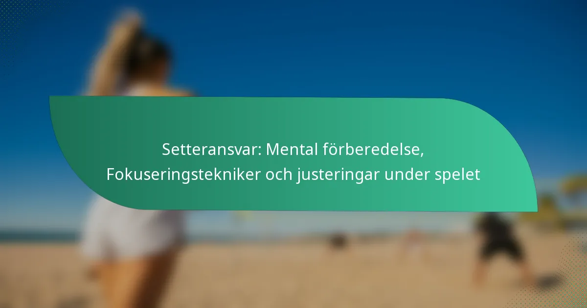 Setterns roll i volleyboll sträcker sig bortom att bara leverera exakta set; den omfattar mental förberedelse, fokus tekniker och förmågan att anpassa sig under matcher. Effektiv mental förberedelse bygger självförtroende och minskar ångest, vilket gör att setters kan prestera under press. Genom att använda olika fokus tekniker kan setters förbättra sin koncentration och beslutsfattande, vilket säkerställer att de förblir medvetna om spelets dynamik och gör snabba justeringar vid behov.